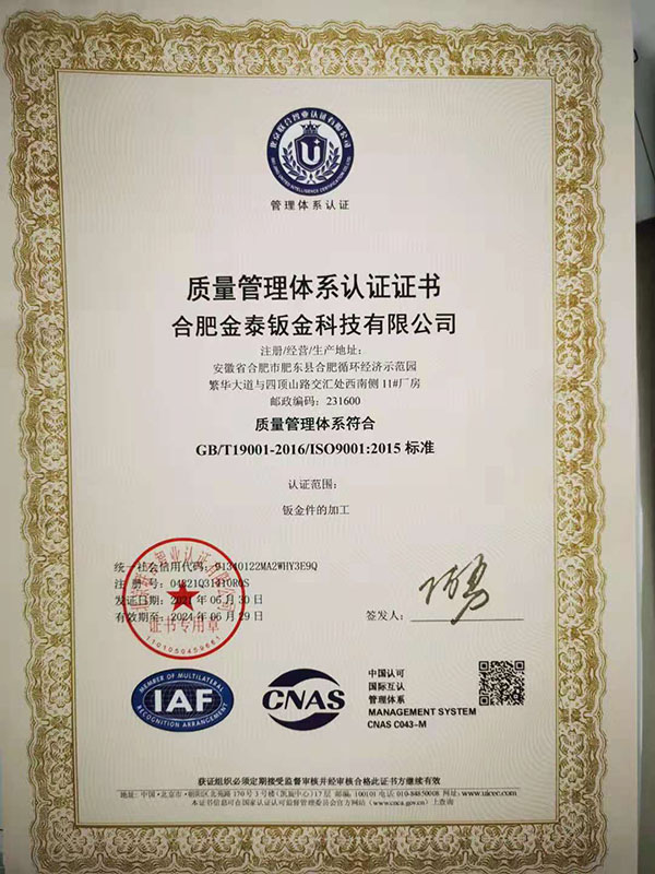 合肥金泰鈑金科技有限公司,專業(yè)從事精密鈑金件加工的新技術(shù)股份制企業(yè),主要承接各類鈑金加工、激光切割、沖壓件、機(jī)箱機(jī)柜、設(shè)備外殼、不銹鋼產(chǎn)品的精密鈑金加工制作。